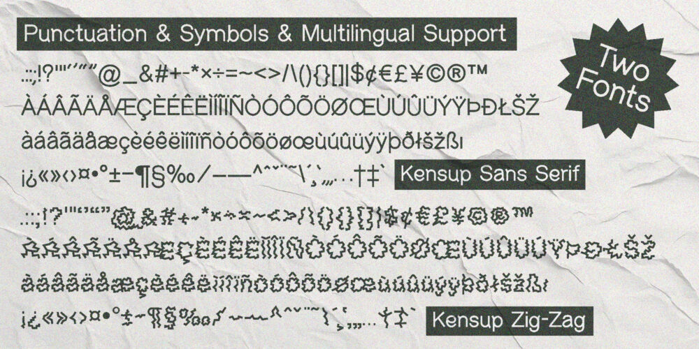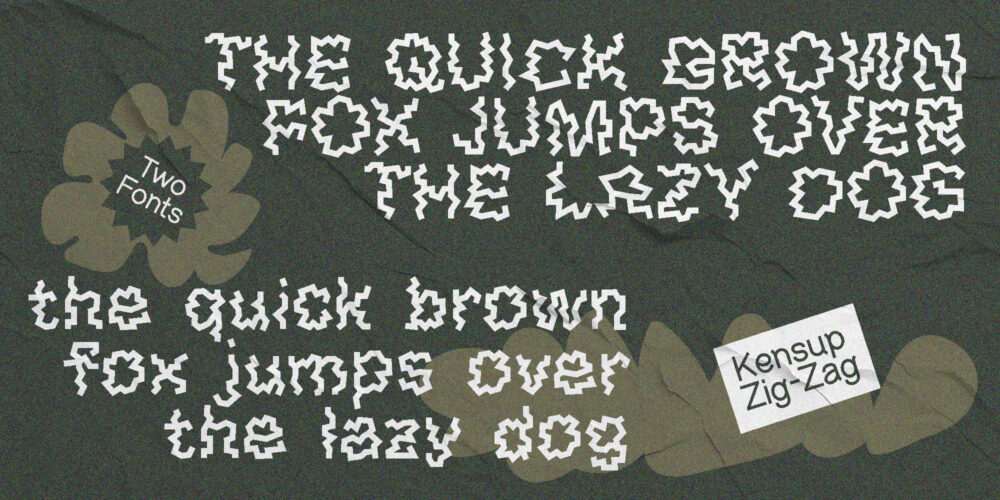 Kenzoo Supplies Family is a playful duo font that combines two unique styles in one package: a clean, modern Sans Serif and a quirky, energetic Zigzag. This versatile pair is perfect for branding, packaging, posters, apparel, and social media designs.
